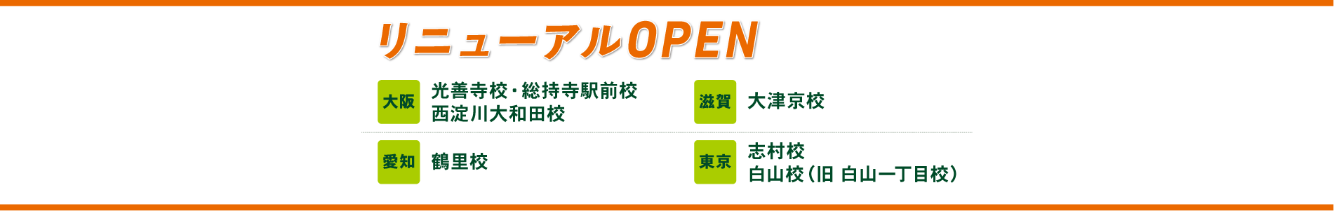 2022.07.19 | 東向日校 生徒数増加につき移転しました。 丹波橋校 生徒数増加につき移転しました。 |