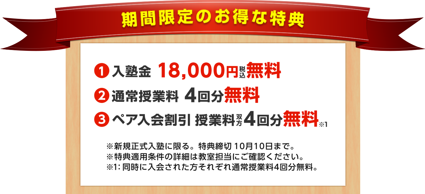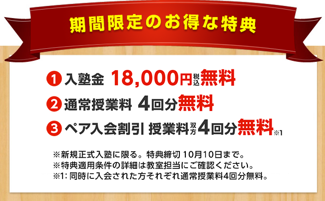 3. 中学1年生の3学期~中学3年生の1学期までの入塾者が対象です。